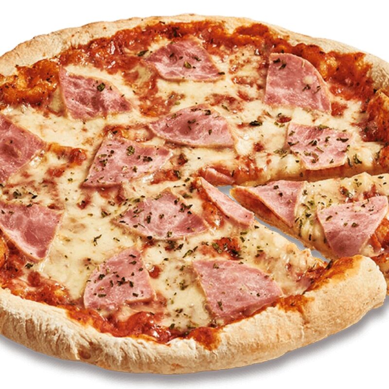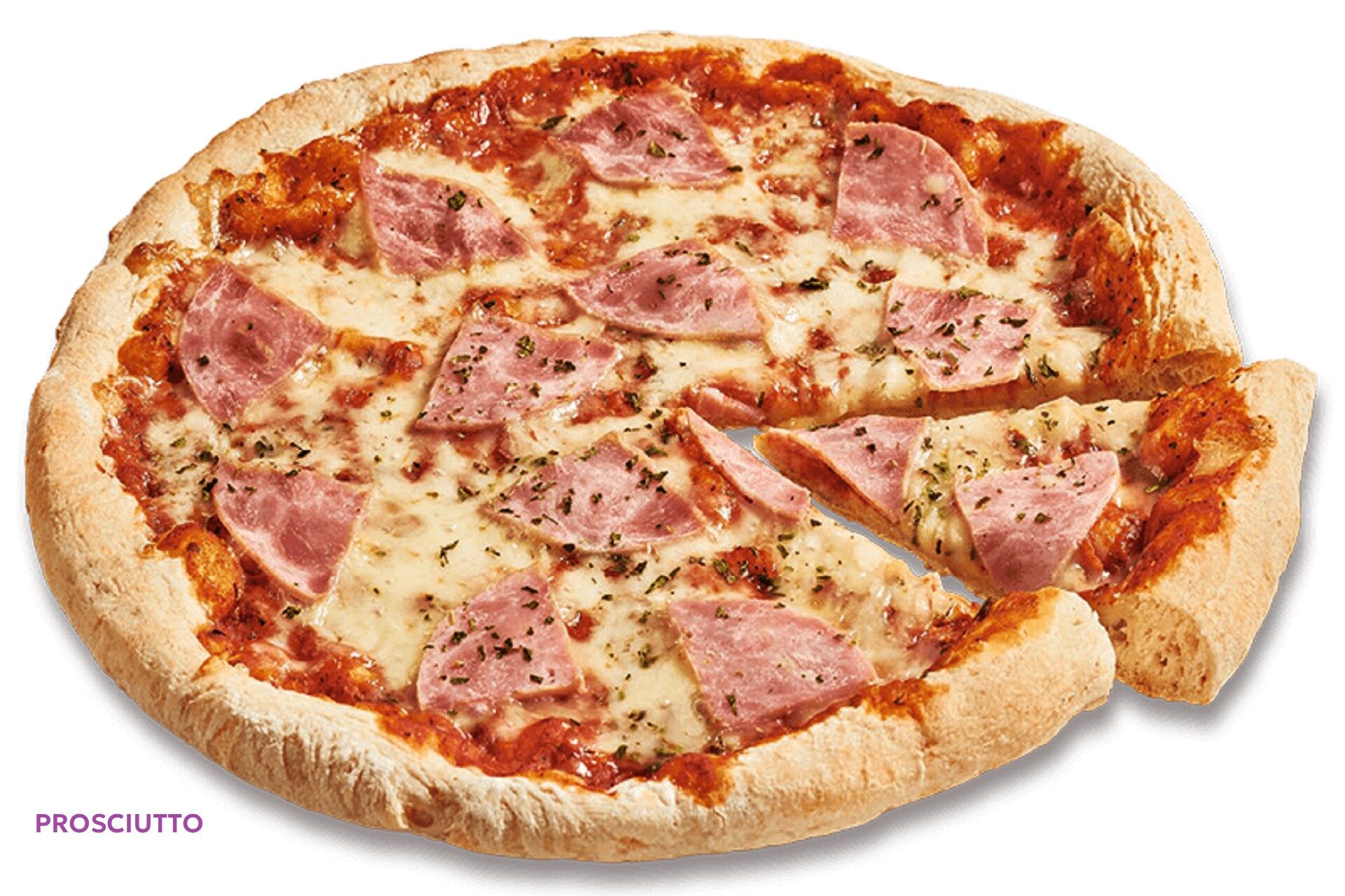 PROSCIUTTO - rajčatová omáčka, dušená šunka, jemná mozzarella a směs bylinek.